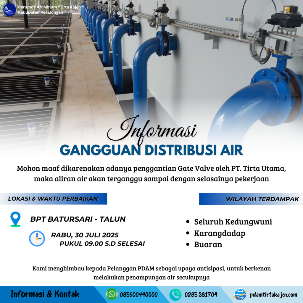 Informasi Gangguan Distribusi Air pada Rabu 30 Juli 2025