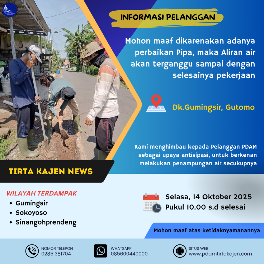 Informasi Perbaikan Pipa Distribusi, Selasa 14 Oktober 2025
